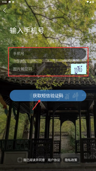 4、输入手机号和图片验证码,点击获取短信验证码按钮,继续注册流程。