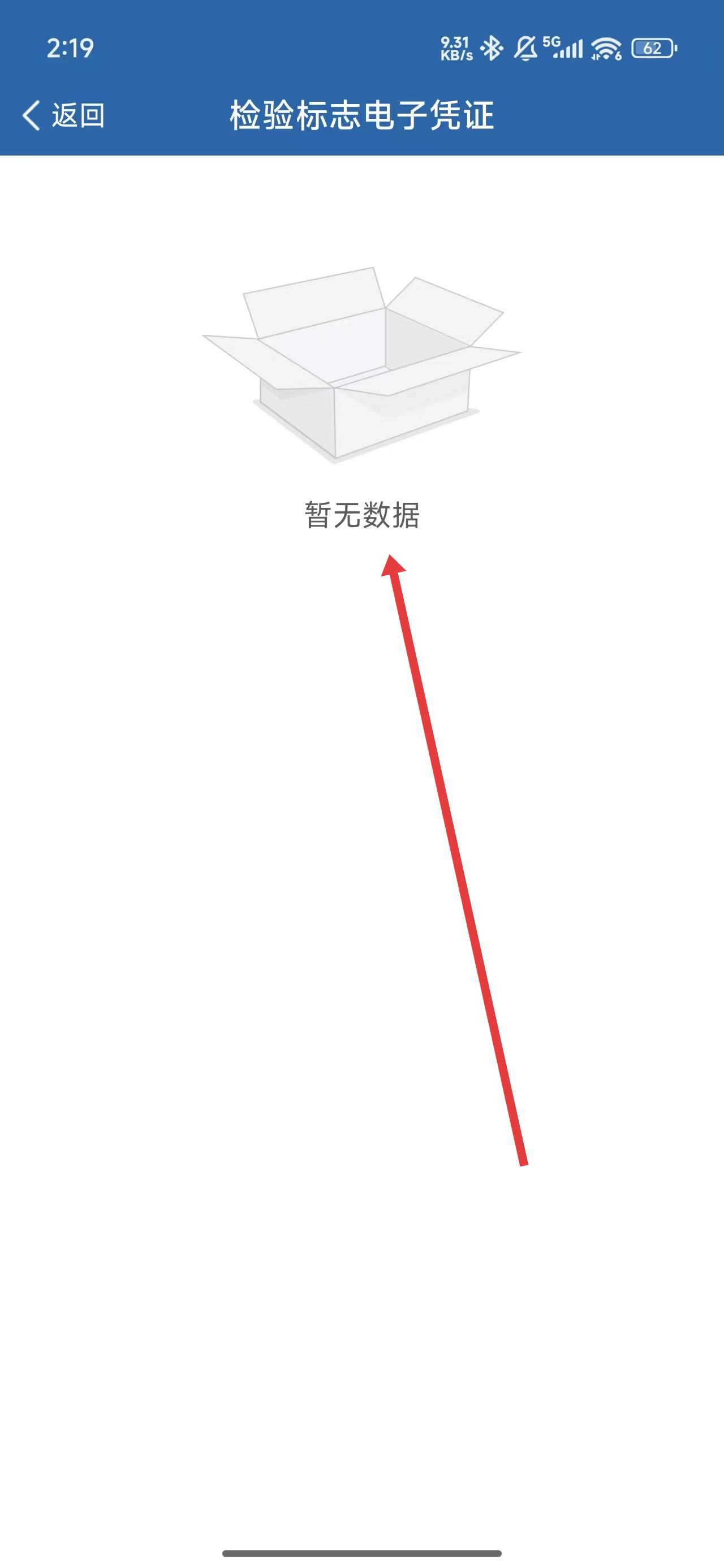 3、进入到检验标志电子凭证页面后,显示当前暂无相关电子凭证数据。