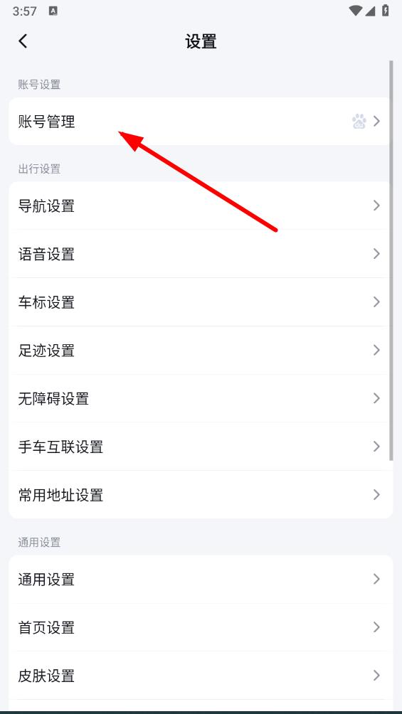 2、在设置页面中找到并点击账号管理选项,进入账号管理界面。