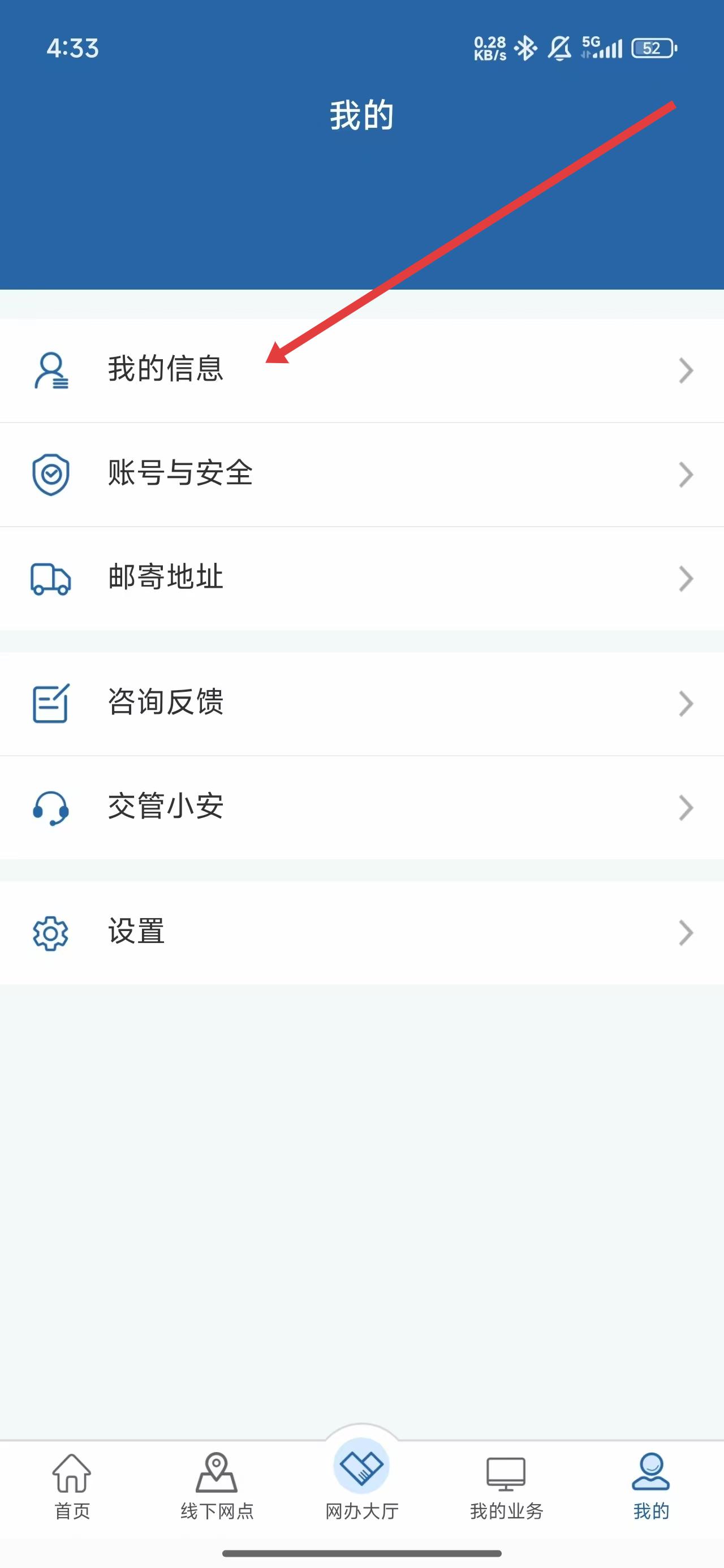 1、在进入到我的主页面中,可以点击我的信息按钮进入更改信息。