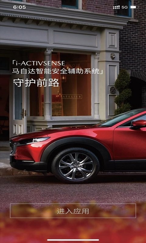 1、打开马自达汽车相关软件,在启动页面点击“进入应用”按钮,进入软件主界面。