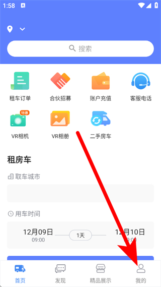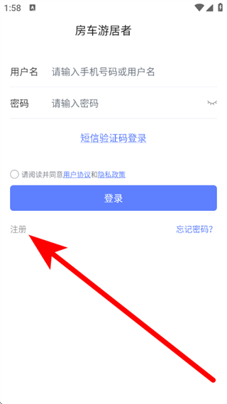 1、打开游居者房车,点击底部的我的,进入登录界面。