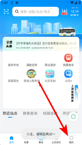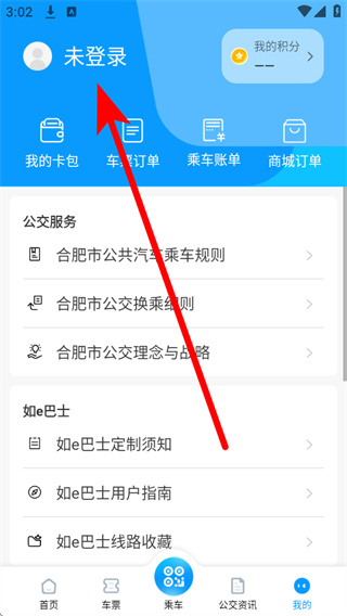 1、打开合肥公交,在首页底部导航栏点击我的,进入个人页面。