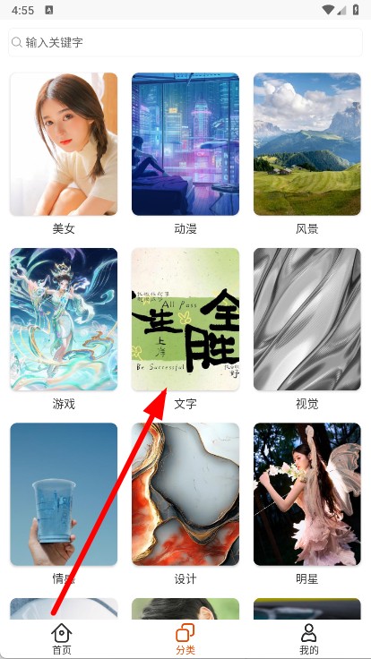2、在分类页面中,选择喜欢的壁纸分类 。