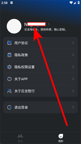 1、打开巨龙智行,点击底部我的,进入个人页面。