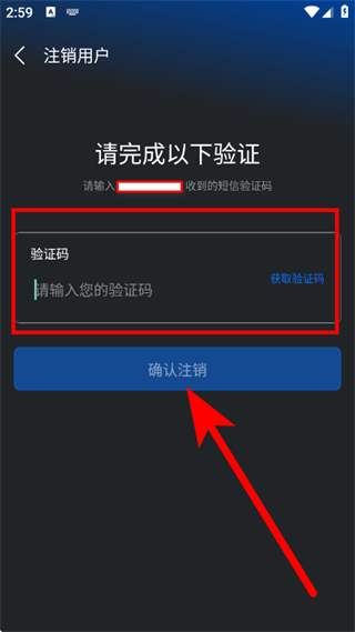 4、在注销用户页面,输入验证码,点击确认注销,完成账号注销。