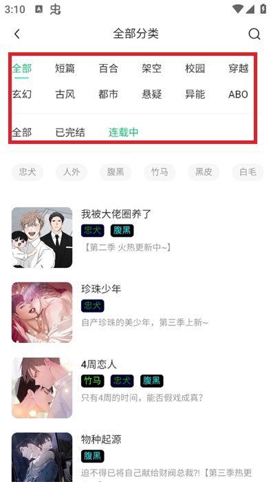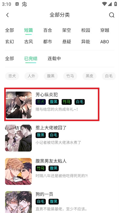 基本上我们喜欢看的这个类型的漫画都会有,耽美的漫画类型能够提供给所有的用户免费观看;