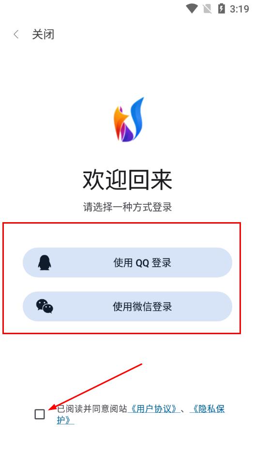 4、进入登录页面后,勾选已阅读并同意网站《用户协议》、《隐私保护》,选择登录方式即可。