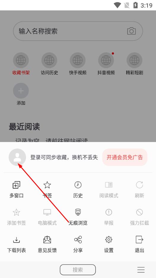 2、在弹出的菜单中,点击头像图标,进入用户中心页面。