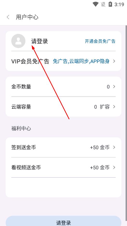 3、在用户中心页面,点击请登录选项。