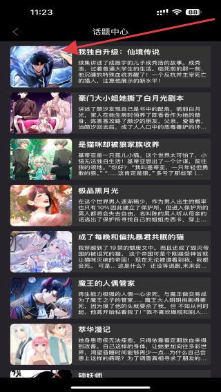 2、进入漫画话题中心的详情页,找到想要观看的漫画,点击即可跳转。