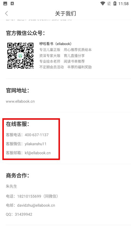 3、在关于我们页面里下滑找到客服板块,这里提供了客服电话、微信以及邮箱可根据需求选择相应方式联系客服。