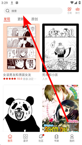 2、在搜索框中输入想要查找的漫画名称,然后点击搜索按钮。