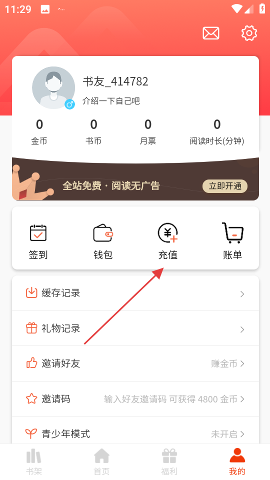2、在个人页面,点击充值,进入充值页面。