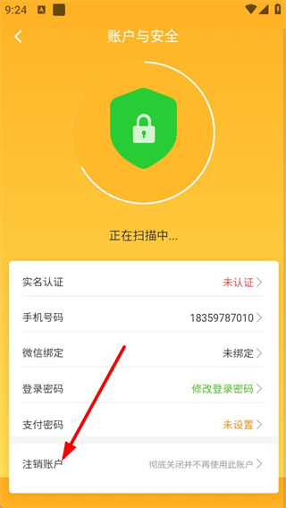 4、在账户与安全页面点击注销账户,可进入账号注销流程。