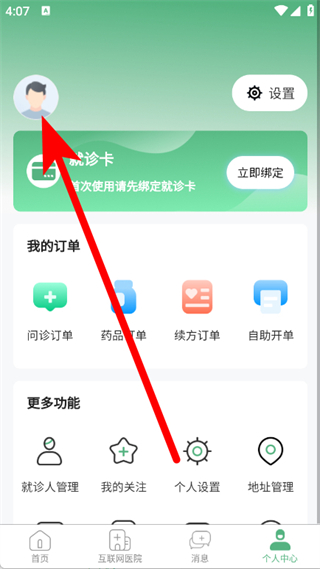 2、在个人中心页面,点击头像,进入登录选择页面。