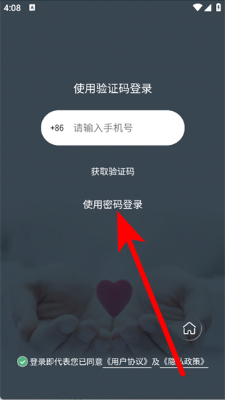 3、在登录选择页面,点击使用密码登录,进入注册页面。