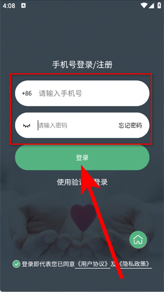 4、在手机号登录注册页面,输入手机号和密码,点击登录按钮,完成账号登录。