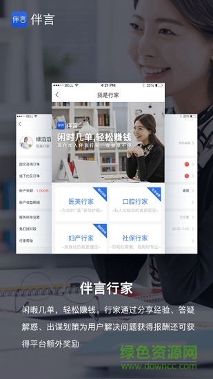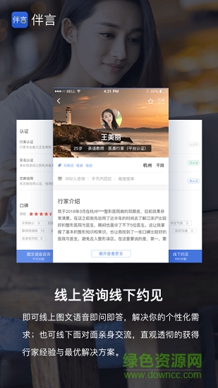 「伴言」是基于口碑与智能匹配为核心的医美健康严选平台,涵盖了医美、口腔等领域的行家里手,行家通过体验式经验分享已经帮助越来越多的人改变他们的生活。「伴言」致力于用分享经济的理念让每个人都能安心变美,让生活更美好。