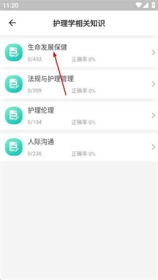 3、在护理学相关知识页面点击生命发展保健选项,进入对应板块。
