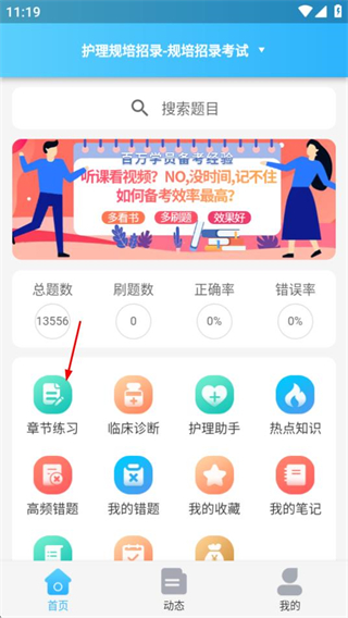 1、在规培考试题库首页点击章节练习选项,进入章节练习页面。