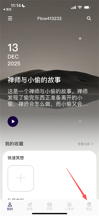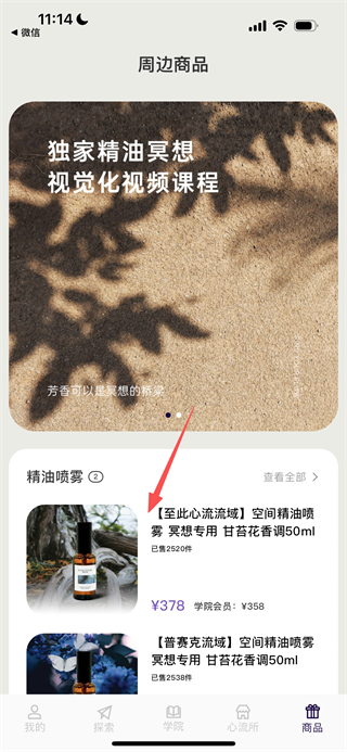 1、在FLOW心流所首页,点击底部的商品选项,进入周边商品页面。
