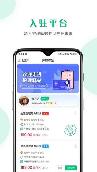 专门为护士打造的效率办公软件,护理驿站护士端app中科护联秉承“关心家庭、关爱病人、关注健康”的服务理念,隆重推出护理驿站居家护理共享服务平台。