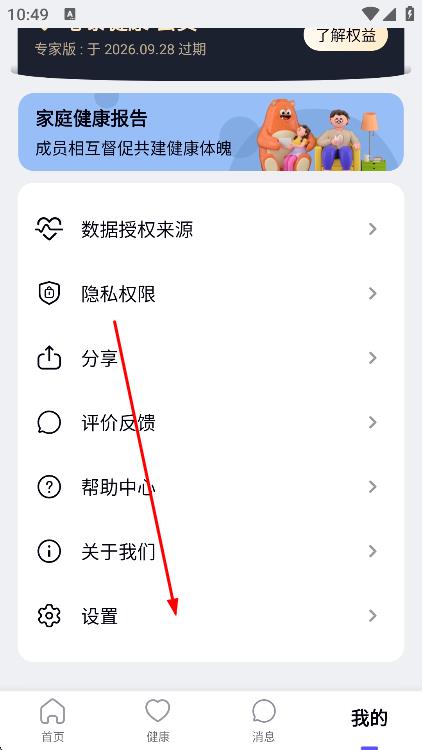 2、在我的页面,找到并点击设置选项。