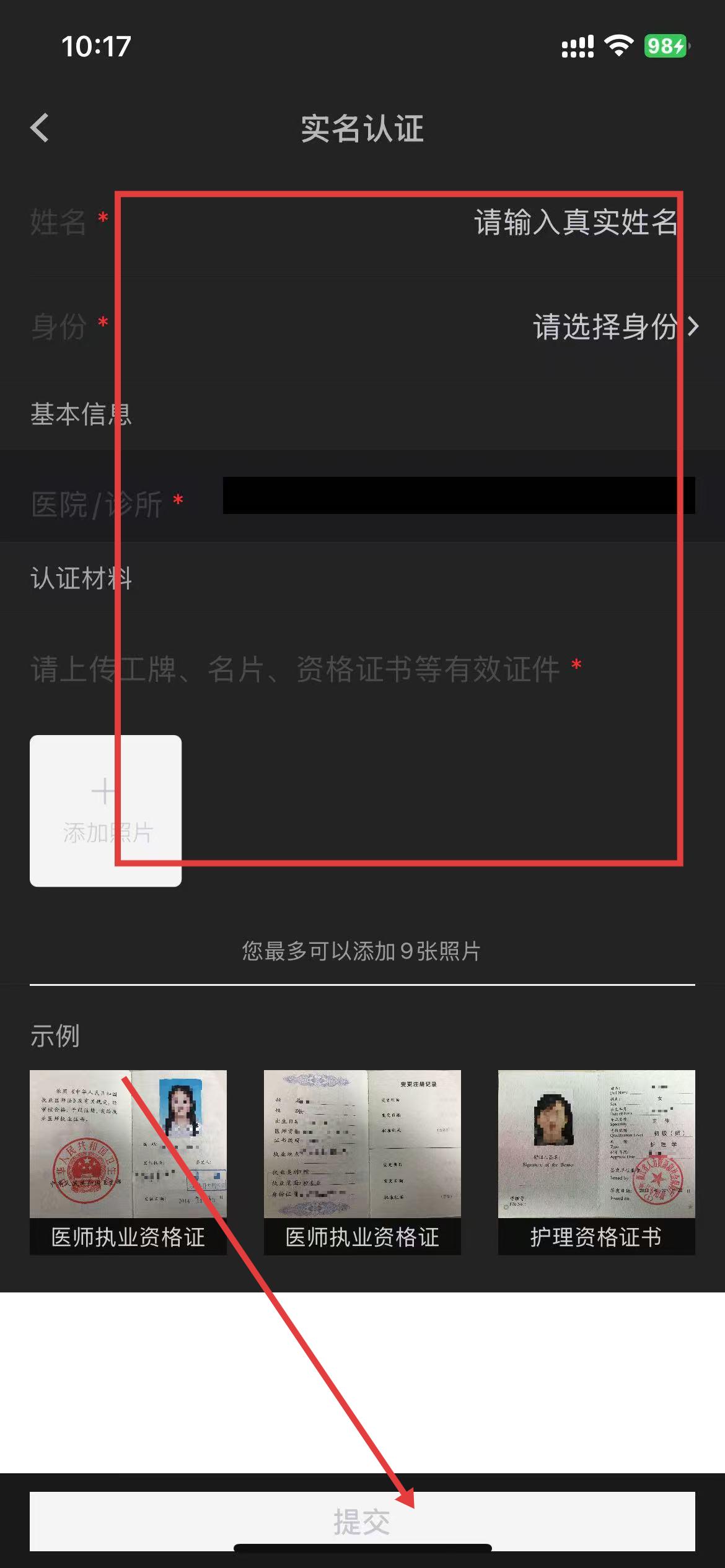 4、填写好个人信息后,点击下方的提交即可完成实名认证。