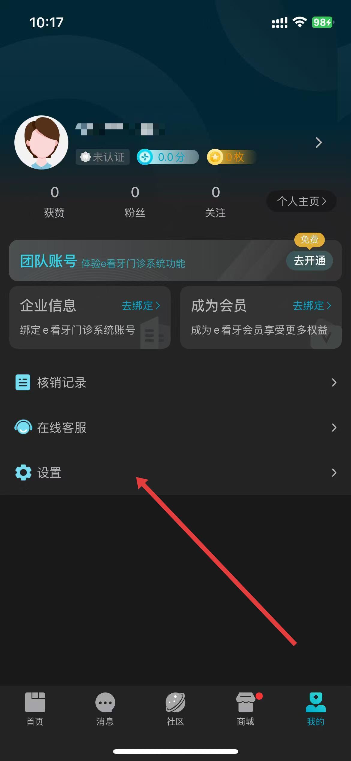 2、在我的页面下滑,找到并点击设置按钮。