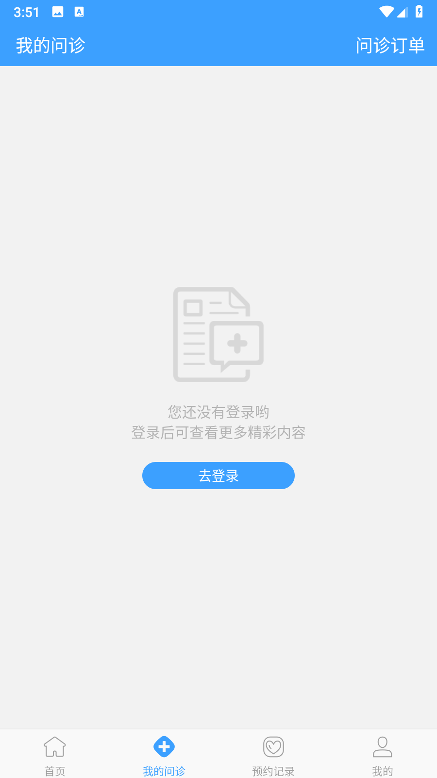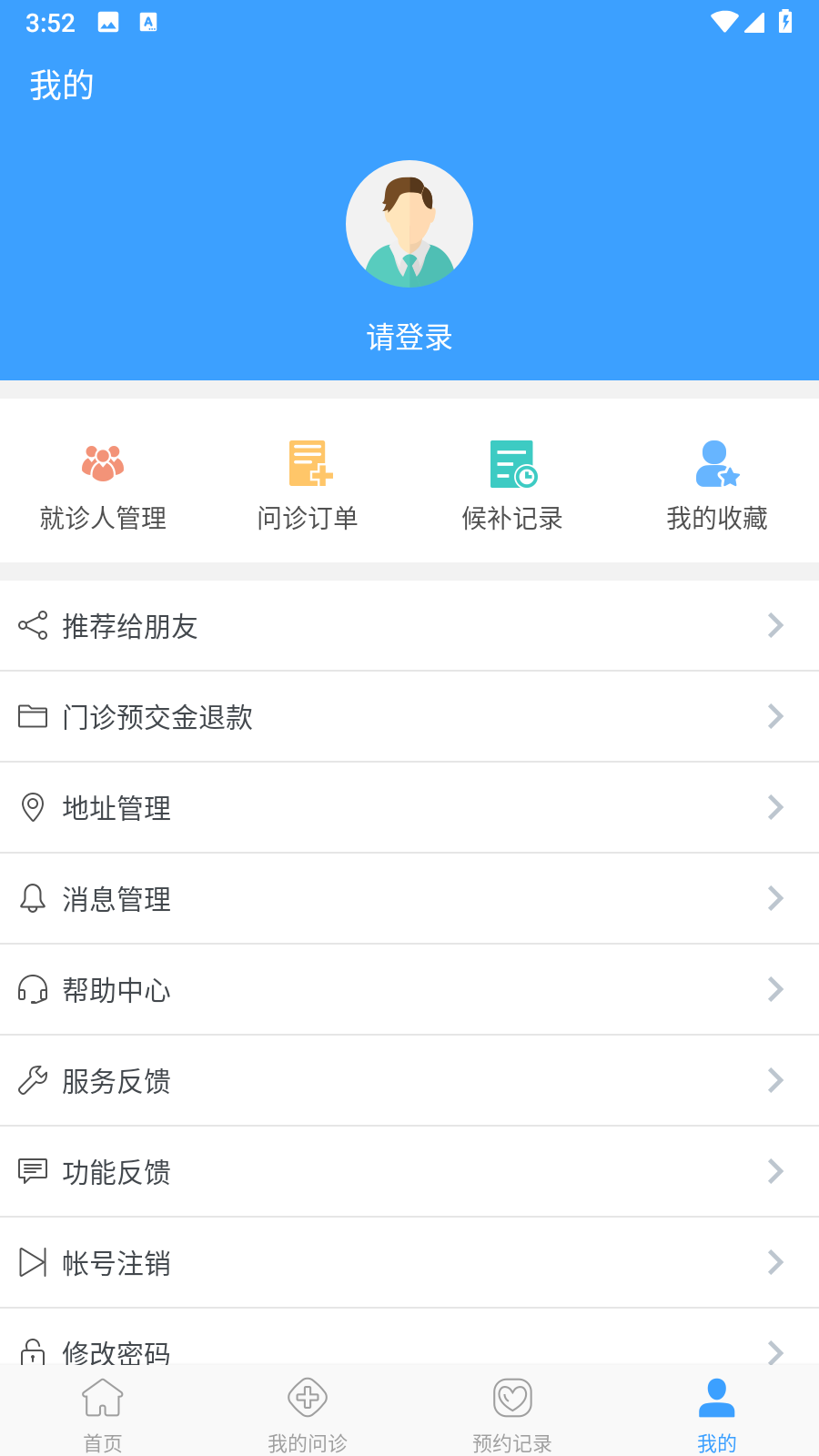 1、打开北医三院相关APP,进入我的页面,完成登录,若没有账号,需先进行注册。