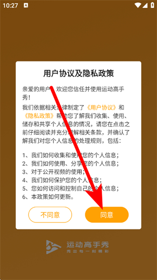 1、打开运动高手秀,在弹窗中点击同意,进入登录选择页面。