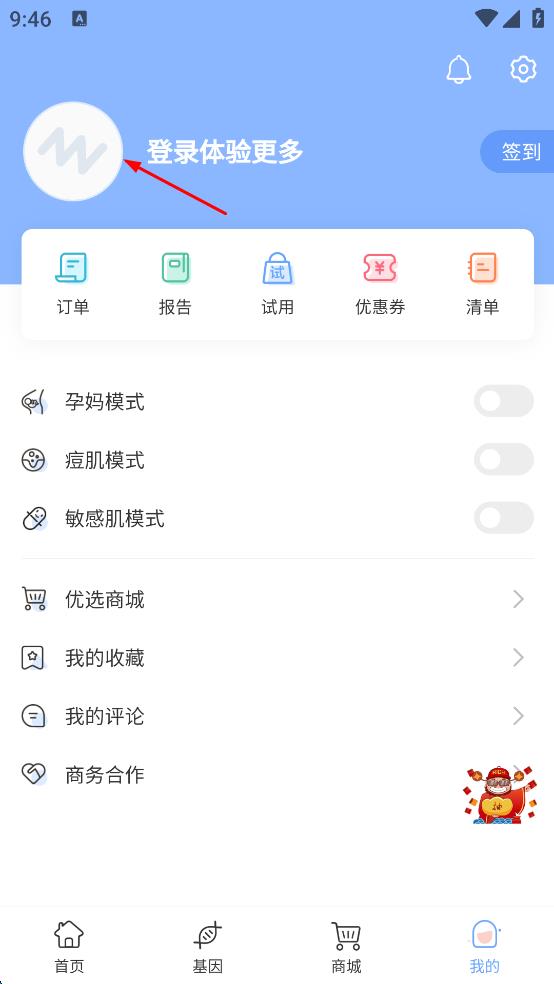 2、在个人中心页面,点击上方的“登录体验更多”区域,进入登录界面。