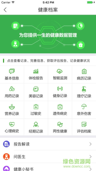 记录了用户在云平台所有的健康轨迹,同时记录家人、亲属的所有健康数据,数据终身保存。