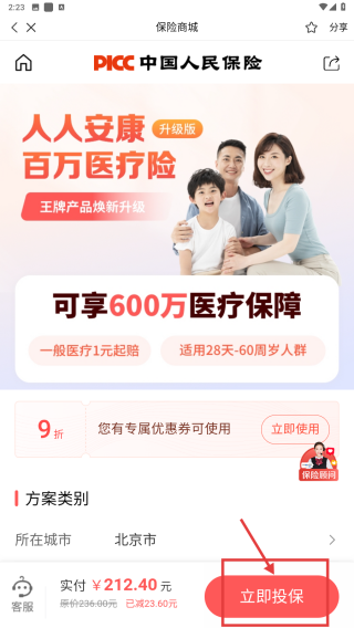 4、在产品详情页,点击立即投保按钮,进行保险投保操作。