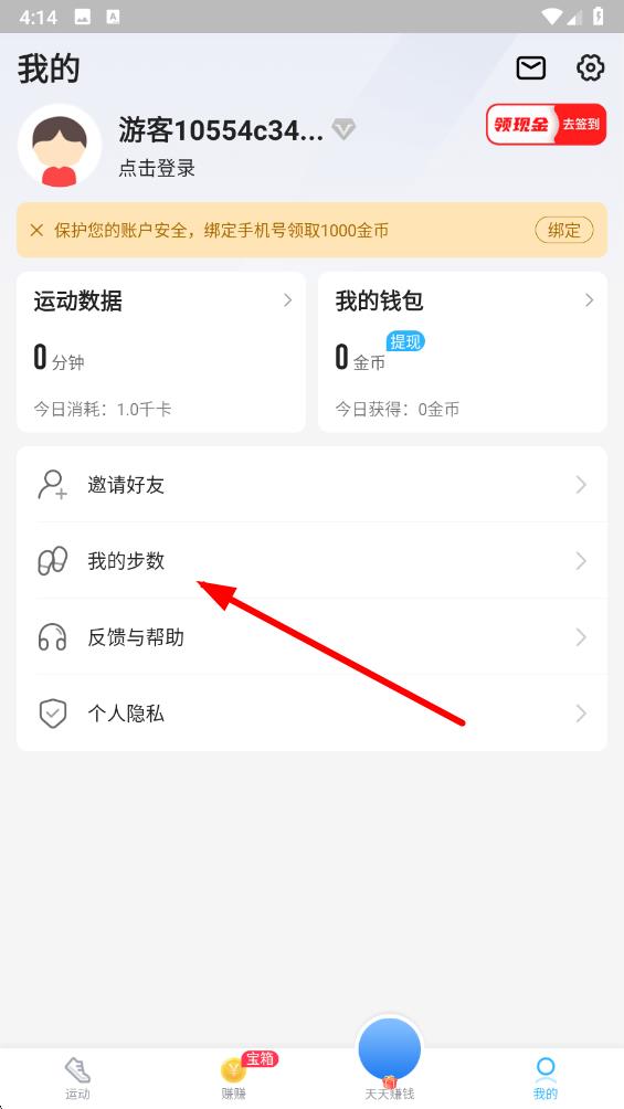 2、在个人页面中,找到并点击我的步数选项,进入步数记录页面。