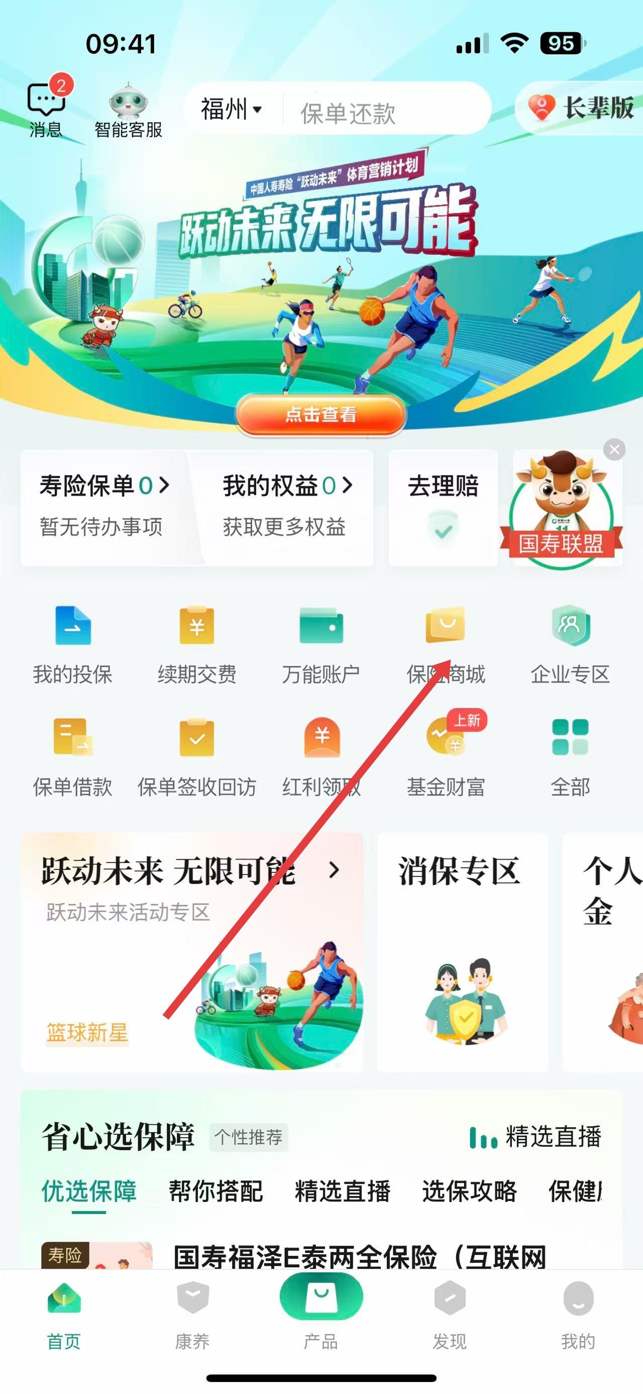 1、打开中国人寿寿险应用,在首页功能区找到保险商城图标,点击进入保险商城页面,开启投保流程第一步。