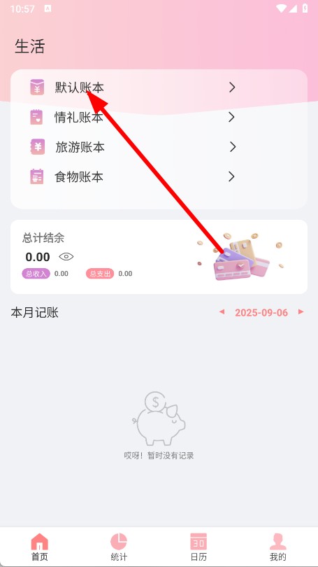 2、进入APP首页后,点击默认账本选项,进入默认账本页面。