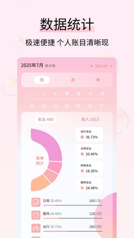 3、定期查看统计分析调整消费:每周或每月初进入数据统计板块,查看生成的消费图表,判断是否存在过度消费,结合分析结果调整下月消费计划,逐步优化个人理财情况。