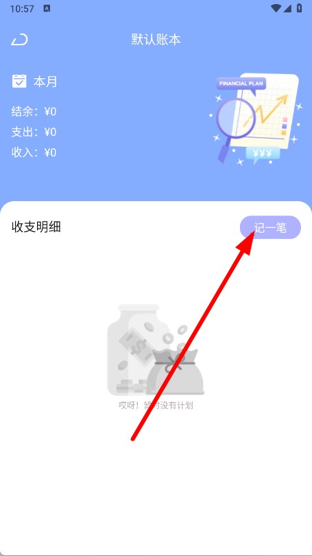 3、在默认账本页面,点击记一笔按钮,进入账单记录界面。