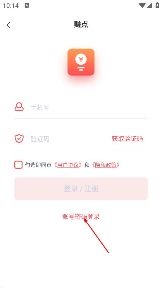 2、在个人页面,点击账号密码登录选项,进入账号密码登录页面。