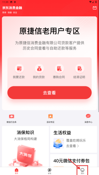 1、打开金融类APP,点击底部我的选项,进入个人中心页面。
