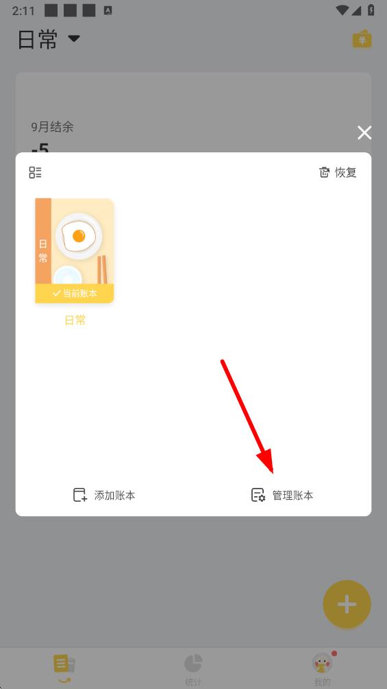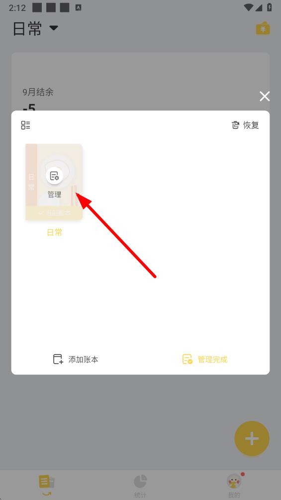 2、在弹出的界面中,点击管理账本选项,进入管理账本操作。