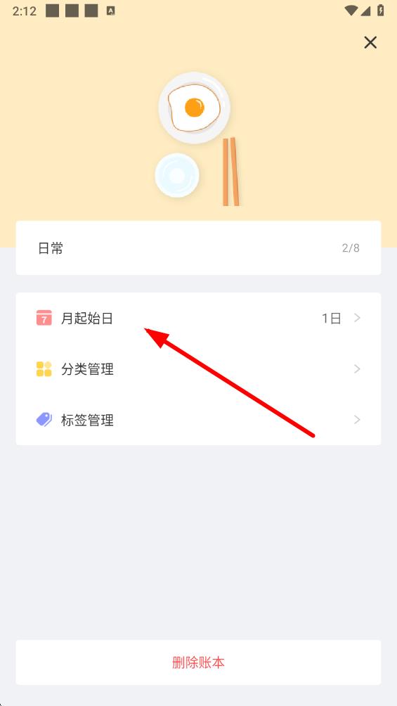 4、在账本管理页面里,找到并点击月起始日选项,然后按照提示设置想要的月起始日即可。