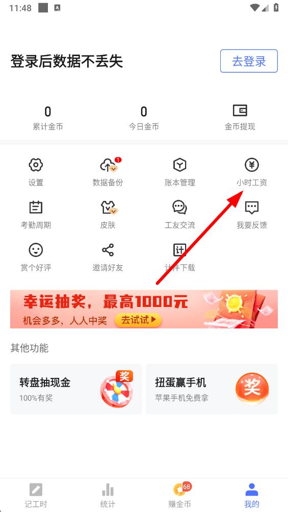 2、在个人界面中,找到并点击小时工资选项,进入小时工资设置页面。