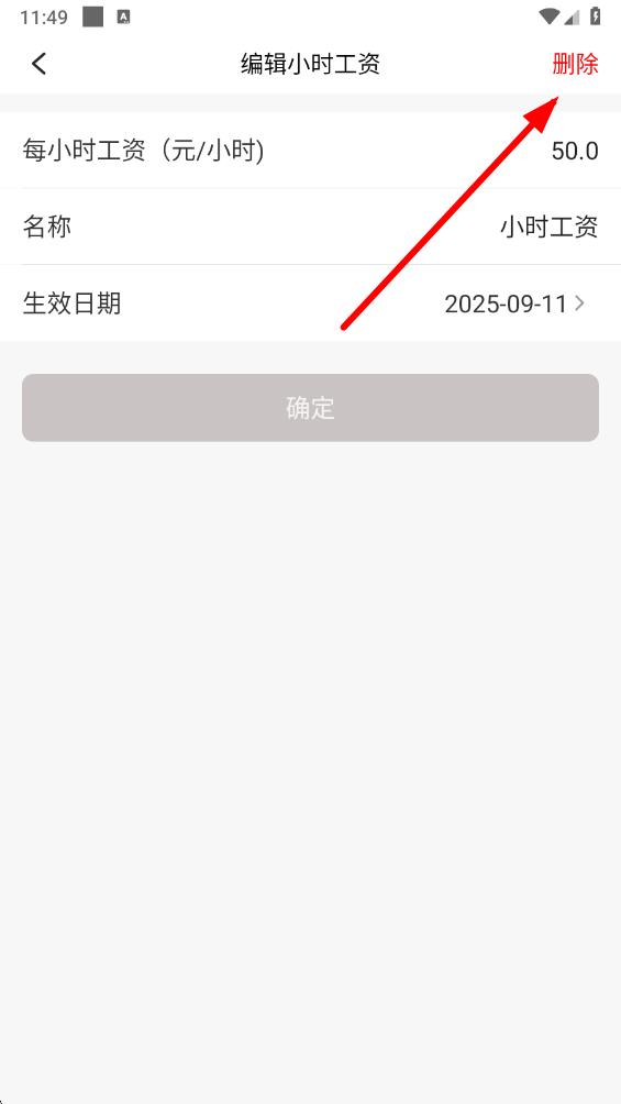 4、在编辑小时工资界面,点击右上角的删除按钮,按照提示确认操作后,即可删除该小时工资。