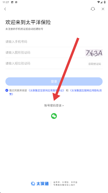 2、在登录页面中,可以通过点击下方的账号密码登录切换登录方式。