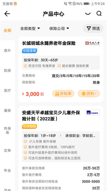 1、支持成人少儿以及父母的保险业务办理