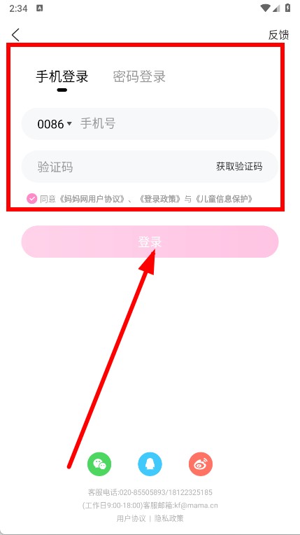 4、输入手机号、验证码,勾选协议后点击登录完成注册。