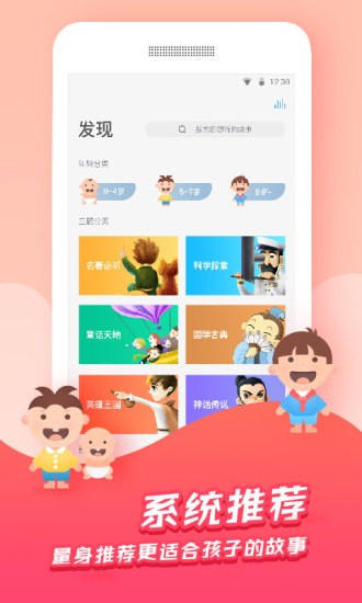 3.科学分龄、贴心推荐:针对孩子的年龄层次、发展需求、性格喜好,推荐更加适合您孩子的故事。
